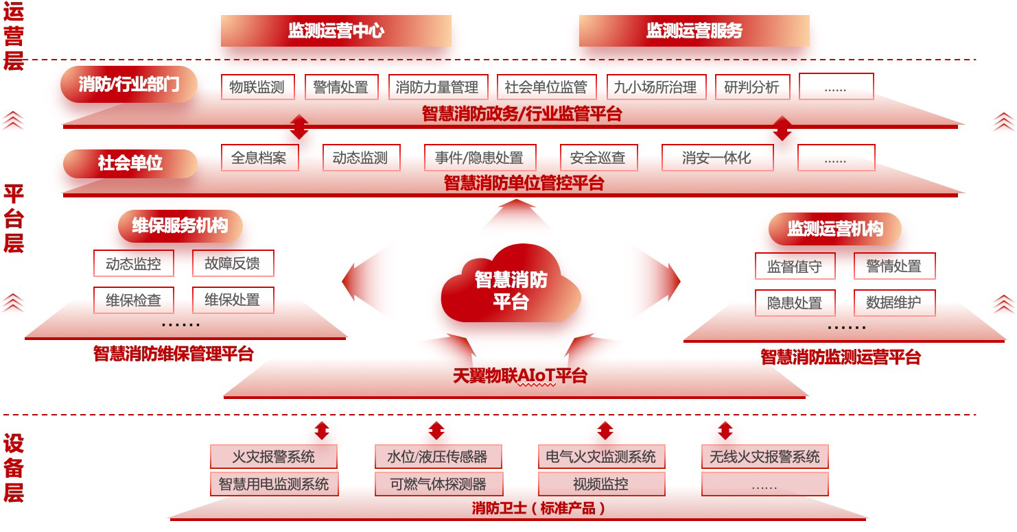 消防管理链上主体都有对应的应用平台产品,且数据互通、业务联动,生态内循环。